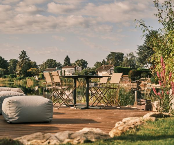 – Eine großzügige Loungeecke und bequeme Liegestühle, die zum Entspannen und Genießen der Sonne einladen, während das leise Plätschern des Wassers für Entspannung sorgt.