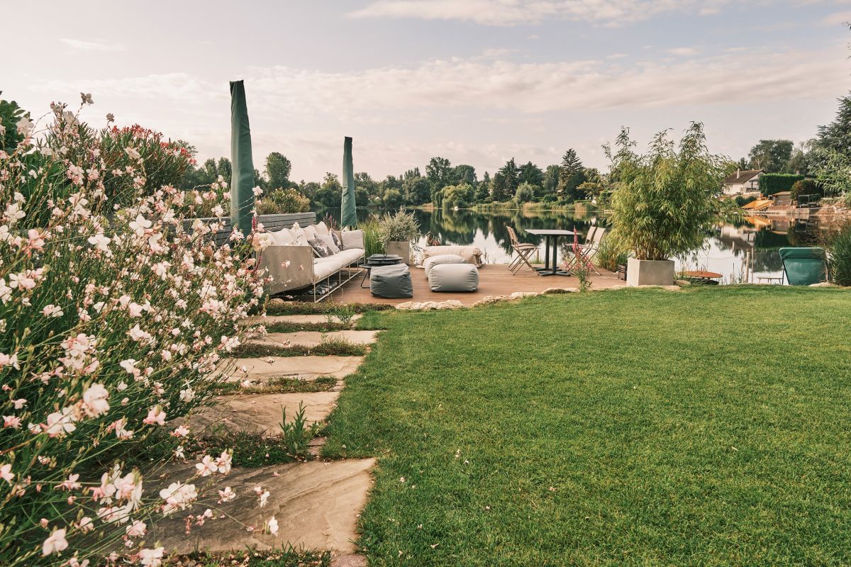 Dieser Garten ist ein Rückzugsort für die ganze Familie, wo Kinder am Wasser spielen können und Erwachsene einen friedlichen Ort zur Erholung finden. Er bietet nicht nur eine malerische Kulisse, sondern auch ein einzigartiges Wohnerlebnis – eine wahre Oase der Ruhe und des Genusses direkt am See.